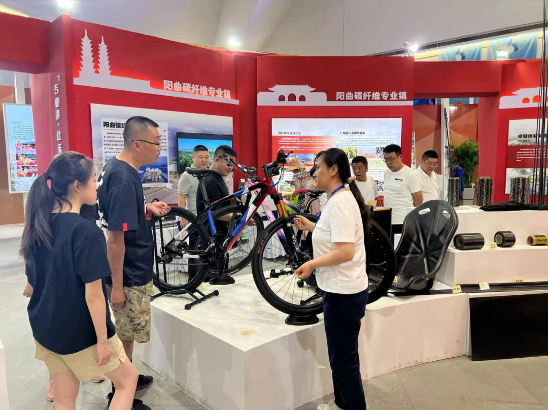 陽曲碳纖維專業鎮以頗具科技感和想象力的展品,讓參展者看到了陽曲助力產業轉型升級、全方位推動高質量發展的決心。碳纖維專業鎮展廳內,陳列著碳纖維絲、碳纖維布、碳纖維復合材料、碳纖維制作的登山手杖、箱包、自行車、返回艙座椅等40種系列產品,小雜糧、中藥飲片、耐火材料等共90余種產品,碳纖維產品以其輕便、高強度、高模量、耐高溫、耐腐蝕等特點吸引參展人員紛紛駐足詢問。