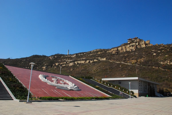 “百團大戰紀念碑”矗立在陽泉市區南6公里,海拔1160米的獅腦山主峰上。這里是抗日戰爭時期,由朱德總司令、彭德懷副總司令指揮的名震中外的“百團大戰”第一階段的主戰場之一。百團大戰是中國抗日戰爭時期,中國八路軍與日軍在中國華北地區發生的一次規模最大、持續時間最長的戰役。八路軍的晉察冀軍區、第129、第120師在總部統一指揮下,發動了以破襲正太鐵路(石家莊至太原)為重點的戰役。戰役發起第3天,八路軍參戰部隊已達105個團,故中方稱此為“百團大戰”。