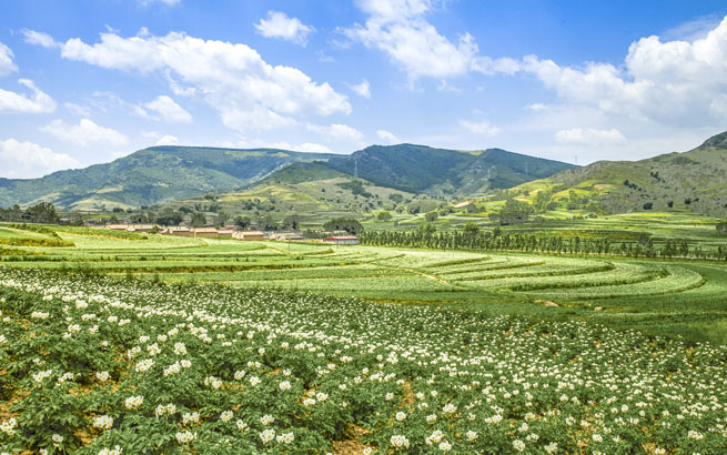 作為國家地理標志保護產品、農業部認證綠色食品、第十四屆糧油博覽會金獎產品,嵐縣馬鈴薯有著得天獨厚的地理優勢和數百年種植歷史。近年來,嵐縣將馬鈴薯全產業鏈發展作為全縣扶貧主導產業,以打造“全國馬鈴薯主食化開發第一縣”“山西馬鈴薯第一縣”為目標,加快農業供給側結構性改革步伐,拓寬馬鈴薯全產業鏈發展空間,初步形成了“土豆種—土豆花—土豆—土豆宴”全產業鏈經濟。
