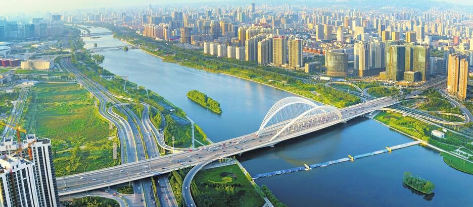 In Taiyuan, the provincial capital of Shanxi, the river runs through the city from the north to the east and acts as a greenbelt.