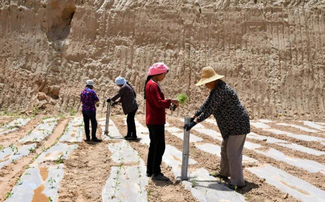在小蒜鎮孫家莊辣椒種植基地,30多畦地膜覆蓋的田壟一字排開,村民們正忙著刨坑、澆水、移栽辣椒,一個個小小的秧苗寄托著村民脫貧致富的希望。