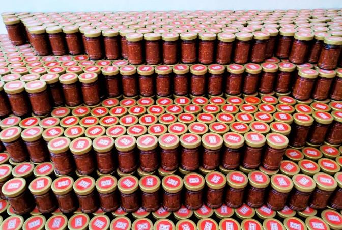 小蒜鎮孫家莊村支部書記梁建宏介紹說:"去年生產辣醬6萬斤左右,加工辣醬1.5萬瓶,現在剩余還有8000瓶左右,如果全部銷售出去,大概能增收10萬元左右"。