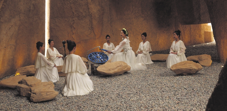 At an exhibition hall in the village, visitors are able to experience life in prehistoric times via the use of modern technology such as multimedia and augmented reality.