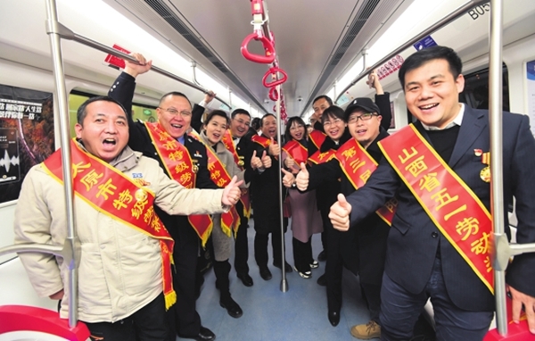 Model workers in Taiyuan take a ride on the subway on Dec 21.SHI XIAOBO / FOR CHINA DAILY