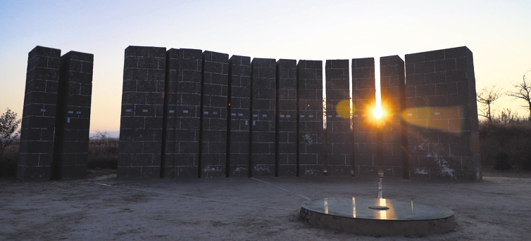 Replicas of compressed earth columns are erected at the Taosi site to measure the angle of the sunlight. JIAO YULONG/FOR CHINA DAILY