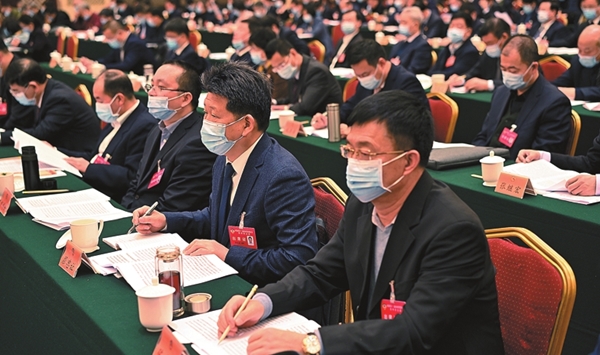 Deputies to the Shanxi People’s Congress listen to the provincial government work report.SU RONGXIANG/FOR CHINA DAILY