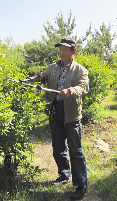 Zhang Xiuqing works as a gardener in a factory near his home. WANG LIQIANG / FOR CHINA DAILY
