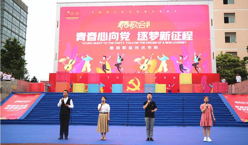 仲夏時節,在晉城職業技術學院田徑場上,一場“青春心向黨 逐夢新征程”慶祝建黨100周年青春歌會正在激情唱響,近兩千名學子用嘹亮的歌聲謳歌黨的光輝偉業。