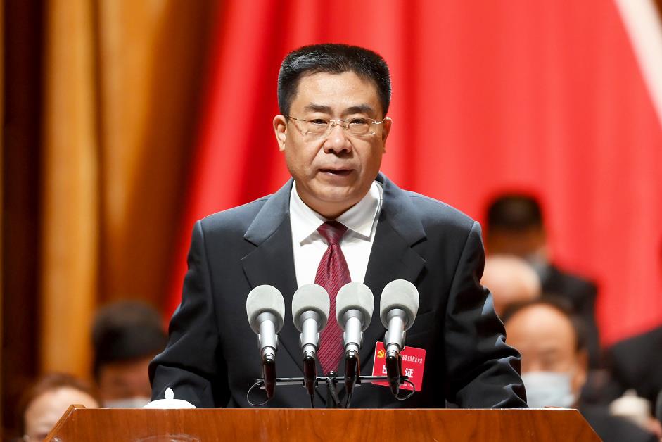 9月27日,孫大軍代表中國共產黨呂梁市第四屆委員會向大會作報告。呂梁日報 劉亮亮 攝