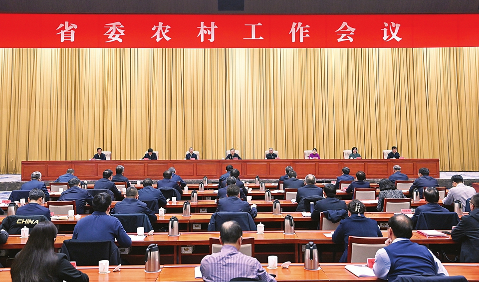 會議充分肯定2023年全省“三農”工作取得的積極成效,深入分析了山西省“三農”工作面臨的新形勢新要求。指出,過去一年,全省上下認真落實黨中央決策部署,克服多重自然災害影響,糧食產量再創新高,特優農業發展提檔升級,脫貧攻堅成果持續鞏固,農民收入穩步增長,農村生產生活條件顯著改善,鄉村治理體系不斷健全,農業農村現代化邁出新步伐。做好2024年“三農”工作,要切實把思想和行動統一到習近平總書記關于“三農”工作的重要指示精神和黨中央決策部署上來,堅持“三農”工作重中之重地位,認真落實農業農村優先發展方針,以實施鄉村振興戰略為總抓手,以學習運用“千萬工程”經驗為引領,守牢糧食安全和不發生規模性返貧底線,強化科技和改革雙輪驅動,強化農民增收舉措,提升鄉村產業發展水平、鄉村建設水平、鄉村治理水平,奮力開創全面推進鄉村振興工作新局面,為建設農業強國作出山西貢獻。一要扛牢穩糧保供政治責任,全方位夯實糧食安全根基。深入實施藏糧于地、藏糧于技戰略,抓住耕地和種子兩個要害,抓好水利這個命脈,完善落實重農抓糧政策舉措,堅決完成糧食播種面積和糧食產量目標任務。二要發展鄉村優勢特色產業,促進農民持續穩定增收。堅持“特”“優”戰略,聚力做好“土特產”文章,推動一二三產業互補、農文旅融合、農工商互動,走好有機旱作農業路子,持續打造農產品精深加工產業集群,積極發展鄉村旅游康養,持續提升產業就業帶農增收水平。三要鞏固拓展脫貧攻堅成果,實現與鄉村振興有效銜接。抓好防止返貧監測,強化產業和就業幫扶,改善脫貧地區發展條件,增強脫貧群眾內生發展動力,穩步提高收入水平。四要強化科技創新、深化農村改革,激發“三農”發展動力活力。建好用好創新平臺,深化落實科技特派員制度,強化核心技術攻關和先進適用技術推廣應用,培育新型農業經營主體,強化農業社會化服務,持續深化重點改革,不斷完善“三農”工作體制機制。五要加快建設宜居宜業和美鄉村,推進縣域內城鄉融合發展。深入實施農村人居環境整治提升行動,加強農村生態文明建設,推動以縣城為重要載體的新型城鎮化建設,著力提升城鄉基礎設施和公共服務水平,更好統籌新型城鎮化和鄉村全面振興。六要加強和改進鄉村治理,夯實黨在農村執政根基。進一步突出抓基層、強基礎、固基本的工作導向,深入推進抓黨建促鄉村振興,常態化開展抓黨建促基層治理能力提升專項行動,大力加強農村精神文明建設,不斷增強農民群眾的獲得感、幸福感、安全感。