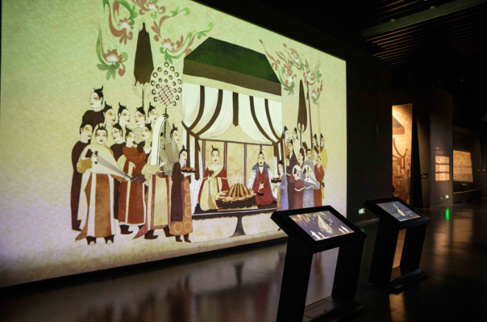 徐顯秀墓北壁壁畫《宴飲圖》互動投影墻。人民網記者 王帆攝