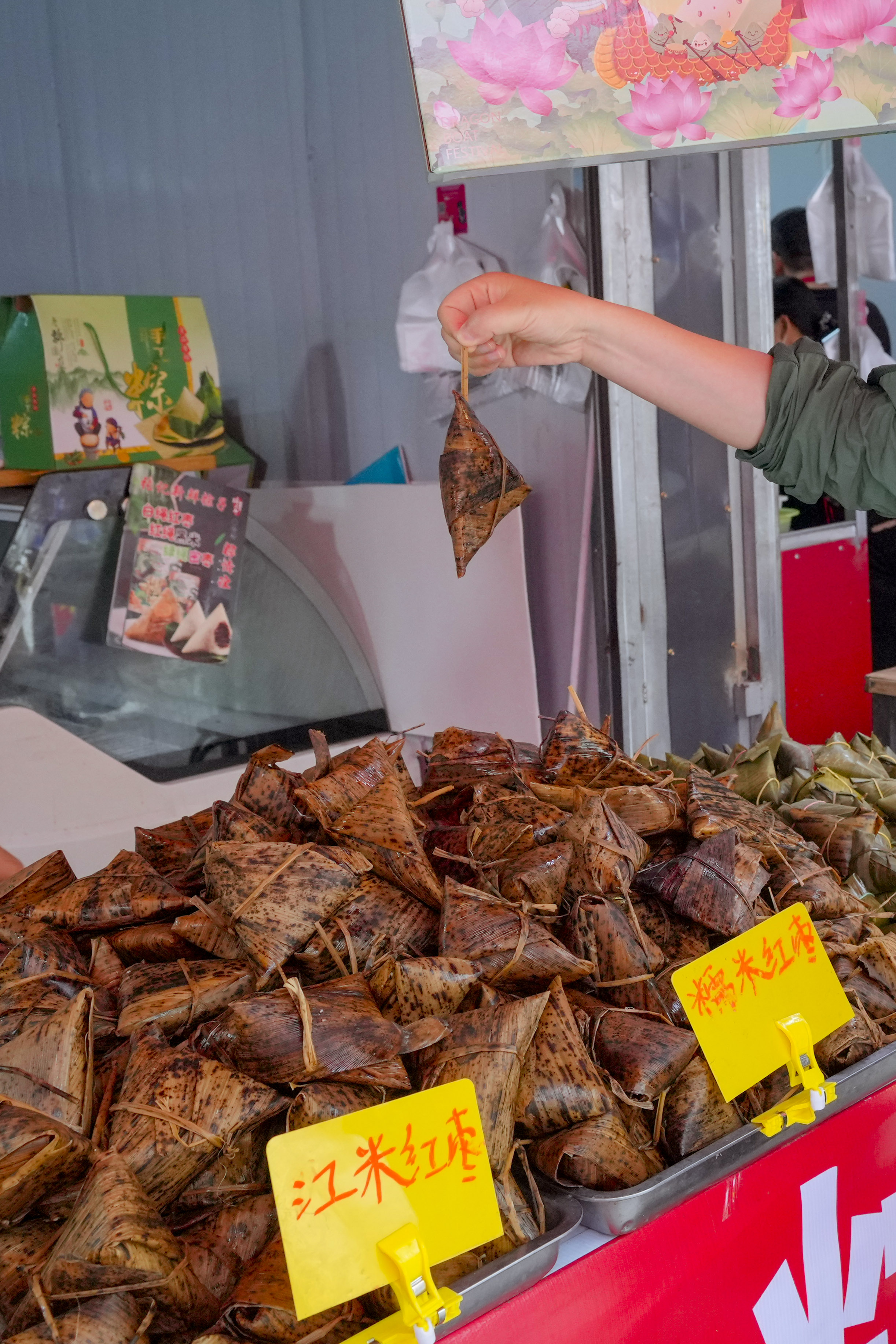 端午節前的周末,山西運城東湖早市熱鬧非凡。扎成把的艾草、刺繡香囊、五彩繩、各色粽子、時令水果……將節日氣氛烘托到了高潮。