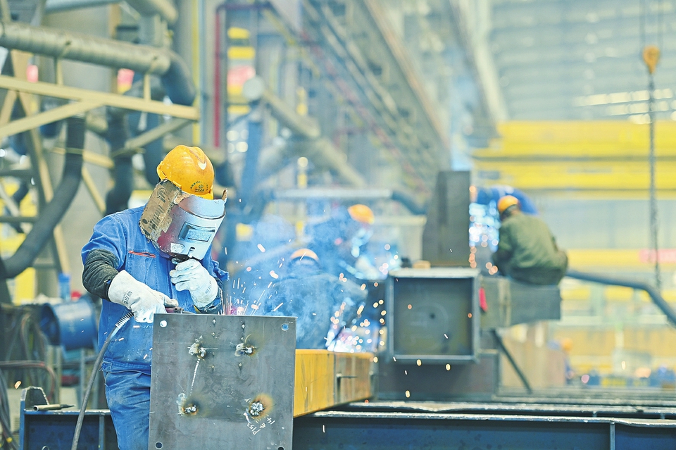 12月3日,山西建投瀟河公司鋼結構智能制造車間機器轟鳴,焊花飛濺,工人們緊盯任務目標,持續精準發力,確保年度各項任務圓滿收官。該公司堅持“綠色、智慧、可持續”發展理念,以智能制造、智慧建造持續擦亮“山西建造”品牌。(記者王瑞瑞攝)