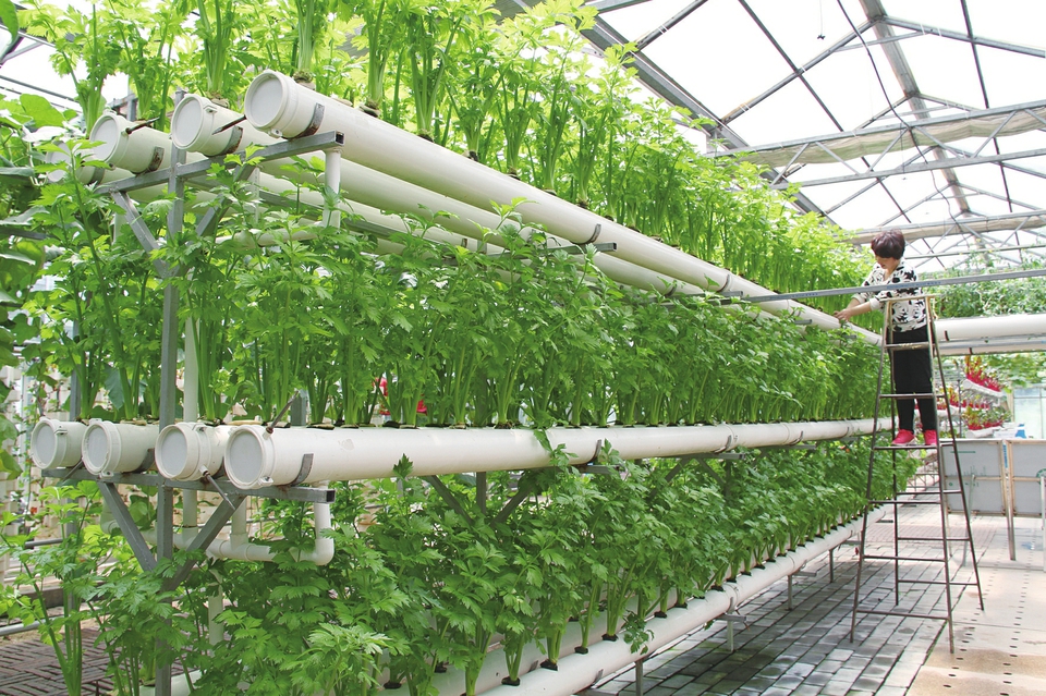 12月24日,陽城縣北留鎮皇城村現代農業科技示范園內,村民在管護培育架上的蔬菜。該示范園將智能溫控、無土栽培、智能配肥、自動灌溉、紫外線殺菌等技術引入農業生產,實現綠色有機蔬菜的全季節、工廠化生產,促進了農業增效、農民增收。(陳來全攝)