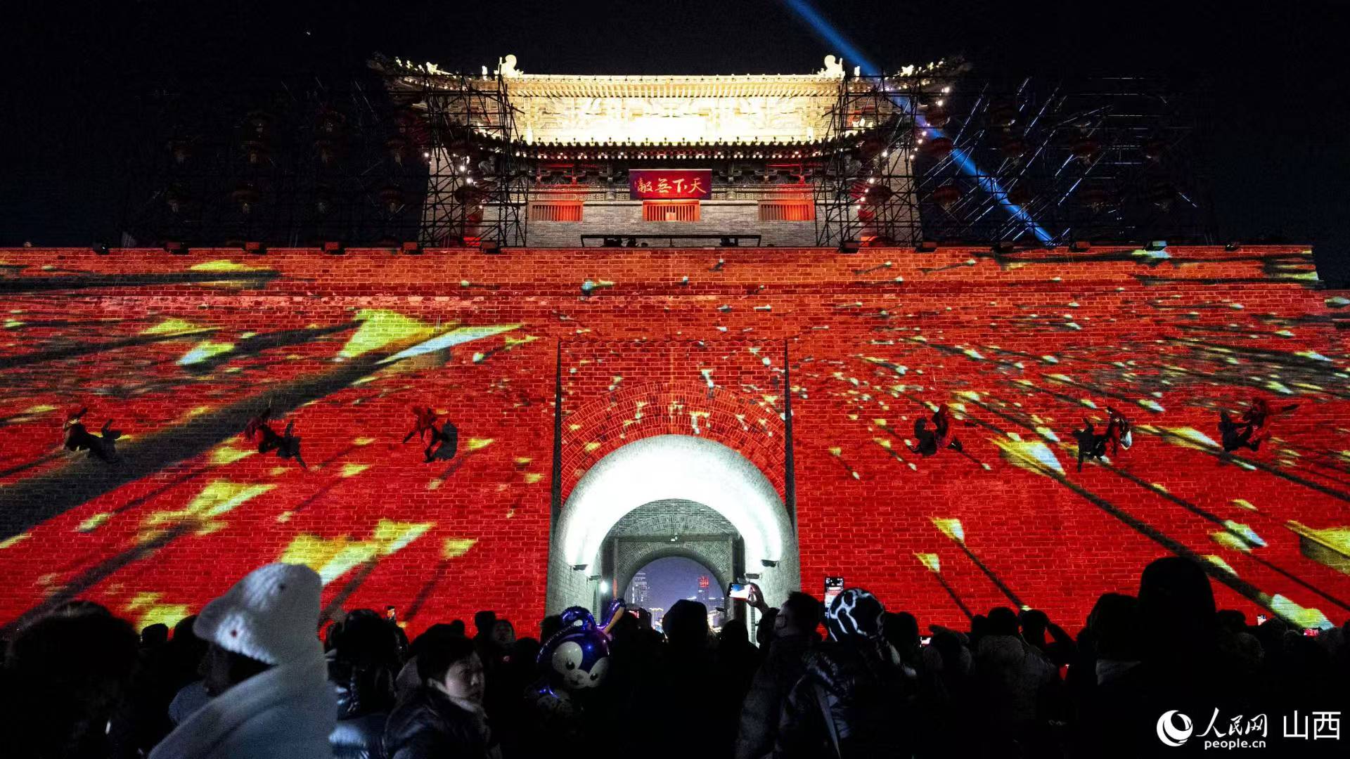 人民網大同1月1日電(盧鵬宇)2024年12月31日晚,2025年“大同年·大不同”新春古都燈會在大同古城璀璨啟動。隨著夜幕降臨,一場融合現代科技與傳統文化的大型交互體驗式迎賓演出震撼登場。夢幻光幕與古城墻相映成趣,舞者翩翩起舞,演繹大同千年古韻。