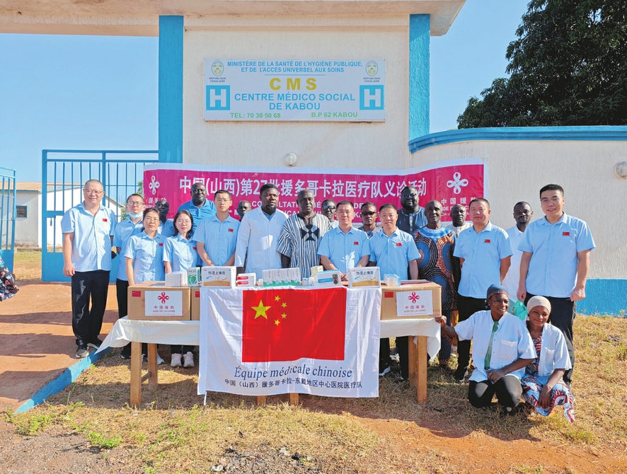中國(山西)第27批援多哥卡拉醫療隊赴多哥北部卡布市,為當地民眾舉行義診活動,并向卡布衛生院捐贈藥品。通訊員攝