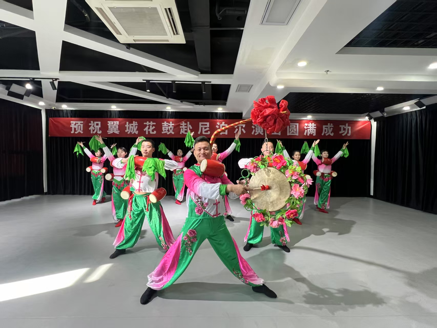 “演出現場,人山人海,現場觀眾紛紛跟著我們的鼓點舞動起來,提前感受來自中國的年味兒?!眳⒓友莩龅男ぼ?,是國家級非物質文化遺產翼城花鼓市級傳承人,演出結束后在朋友圈寫下一段話:翼城花鼓終于走出國門,邁向世界的第一步!