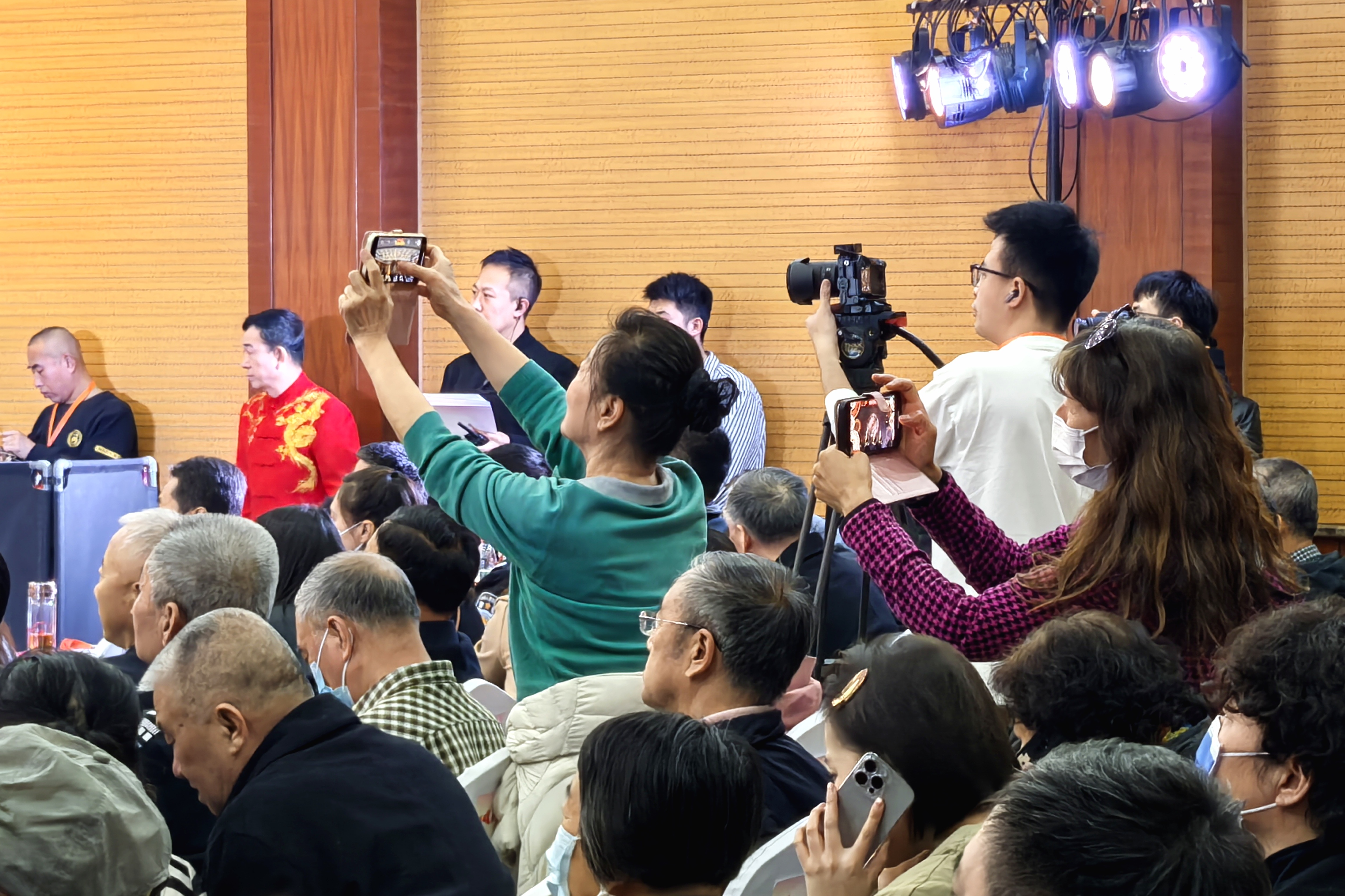 下圖:觀眾舉起手機記錄情景劇中的“知識點”。人民網記者王晏如攝