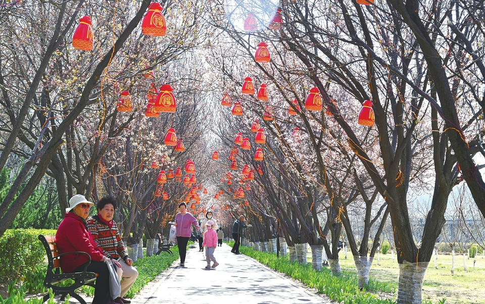 3月30日,位于陽泉市桃河礦區段的桃花蹊景點,紫葉李滿樹繁花,與新種植的郁金香、“福袋”燈籠裝飾交織成一幅170余米的詩意畫卷。近年來,陽泉市聚焦桃河兩岸生態修復,將文化融入景觀,彰顯城市底蘊和人文氣息。劉勝攝