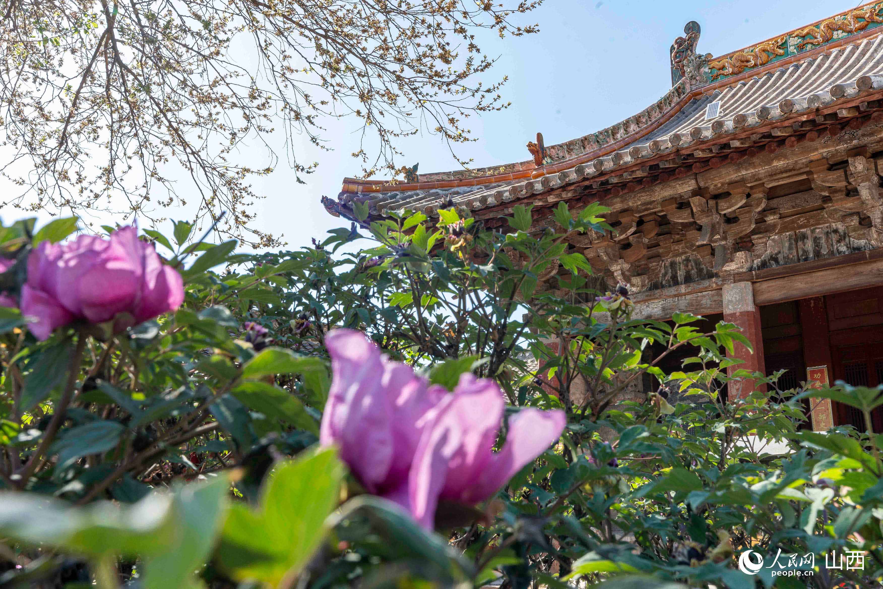 月臺前千年牡丹盛放。