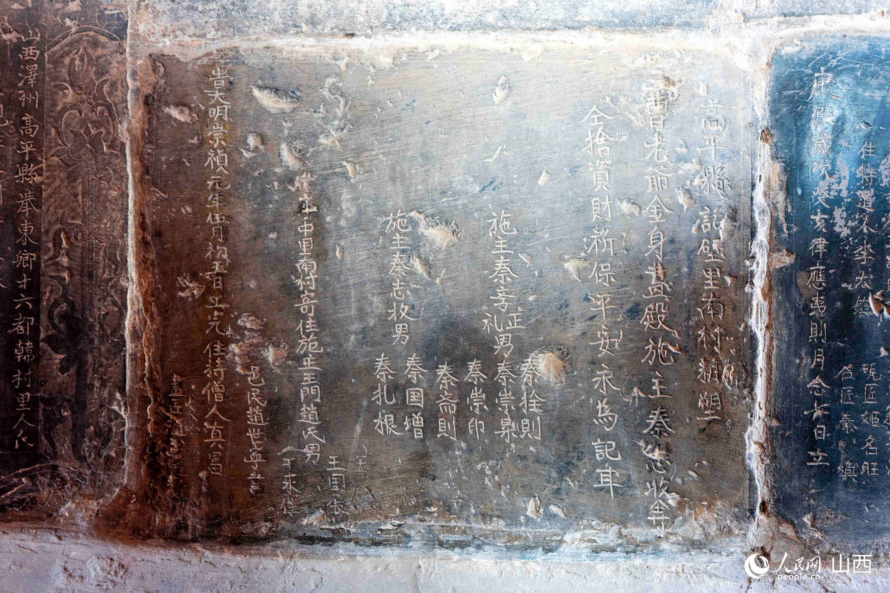 正殿兩側的石碑背面均刻著昔日各村、社、字號、個人捐來的銀兩花名。東碑鐫刻捐資名錄137人,涵蓋高平、陵川、澤州三地62個村落及商號。由此可知,明清晉東南地區商業的發展和商人群體的活躍為民間信仰的繁榮提供了必要的經濟基礎。