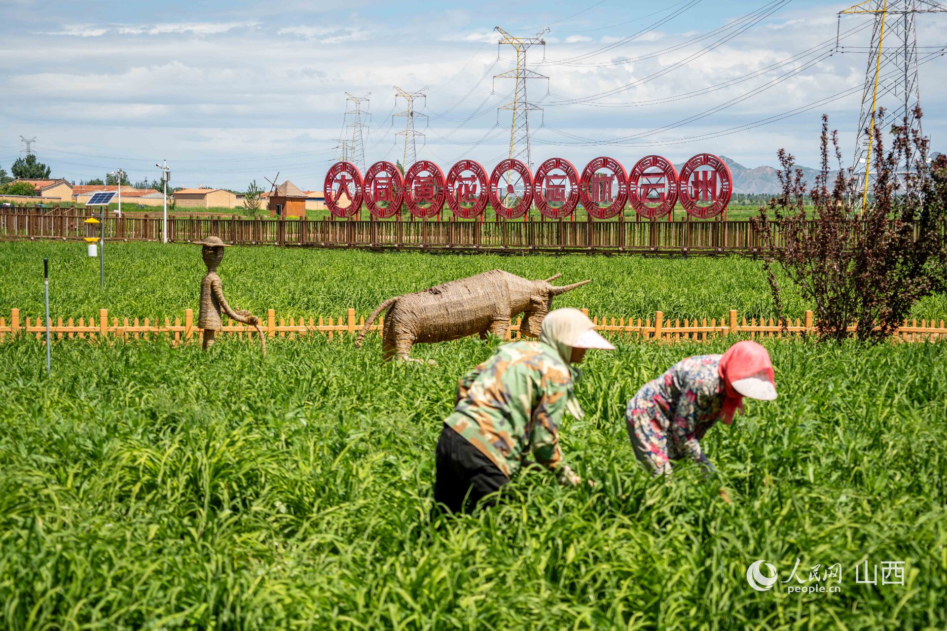 在大同市云州區有機黃花標準化種植基地,村民正在勞作。人民網 馬夢迪攝
