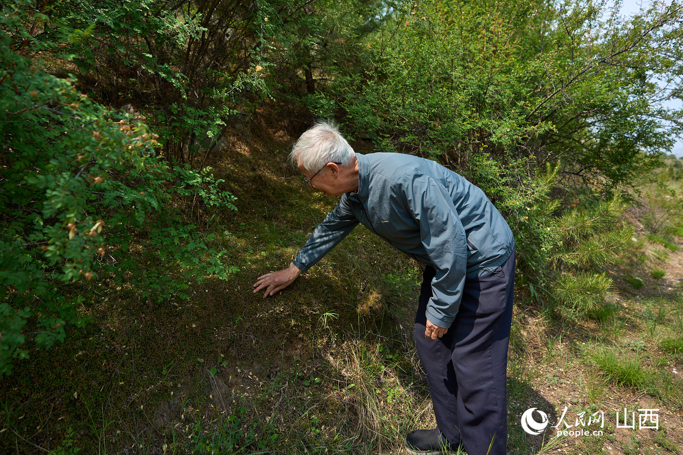 “你看那片是困難造林地,偏關的土層很薄,土里石頭多,有的土層才有20公分深,而一般樹木成活需要更厚的土層?!?/p>