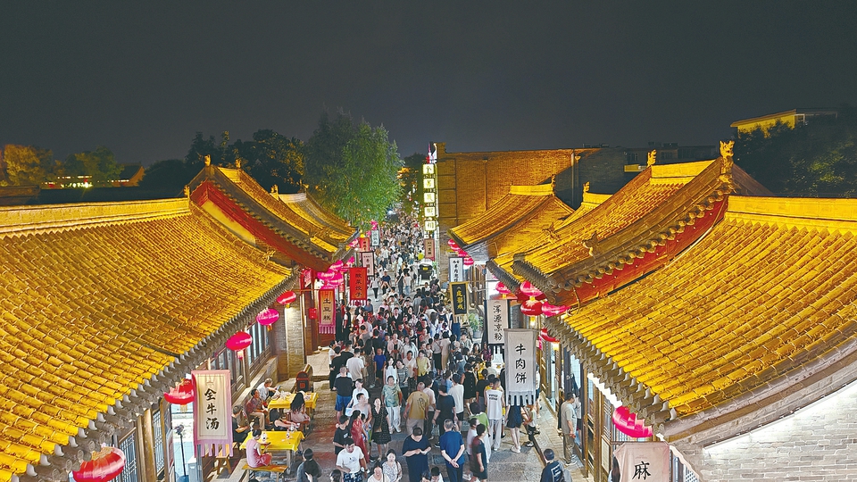 7月13日晚,盛夏時節的忻州古城燈光璀璨,游客逛夜市、品美食、賞夜景,盡情享受夏夜美好時光。(褚震 攝)