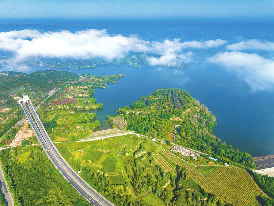 10月3日,左權縣清漳河國家濕地公園石匣庫區云霧繚繞,宛若仙境。近年來,該縣大力推進生態保護與修復工程,濕地公園生態環境質量顯著提升、生物多樣性日益豐富。(張文軍 攝)