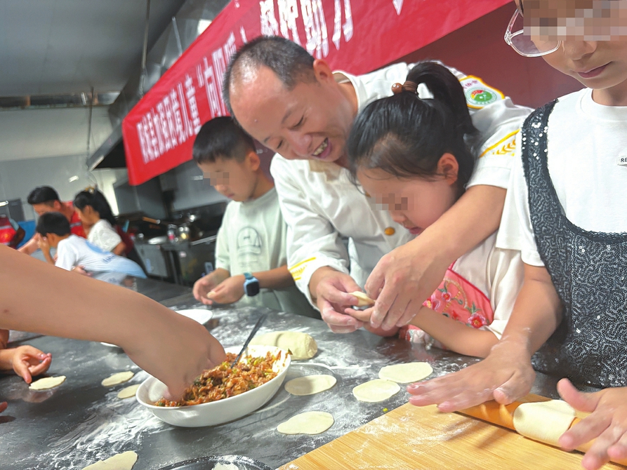 非遺與生活技能的傳授,讓孩子在實踐中收獲成長。演禮鎮組織困境兒童走進旭昇陶瓷科技有限公司,在琺華瓷制作車間,孩子們從勾線、染色到親手繪制瓷盤,感受非遺的魅力;餐飲行業協會的“向陽暖心”活動中,專業廚師教孩子們搟面皮、包餃子,還入戶傳授家常菜制作技巧。